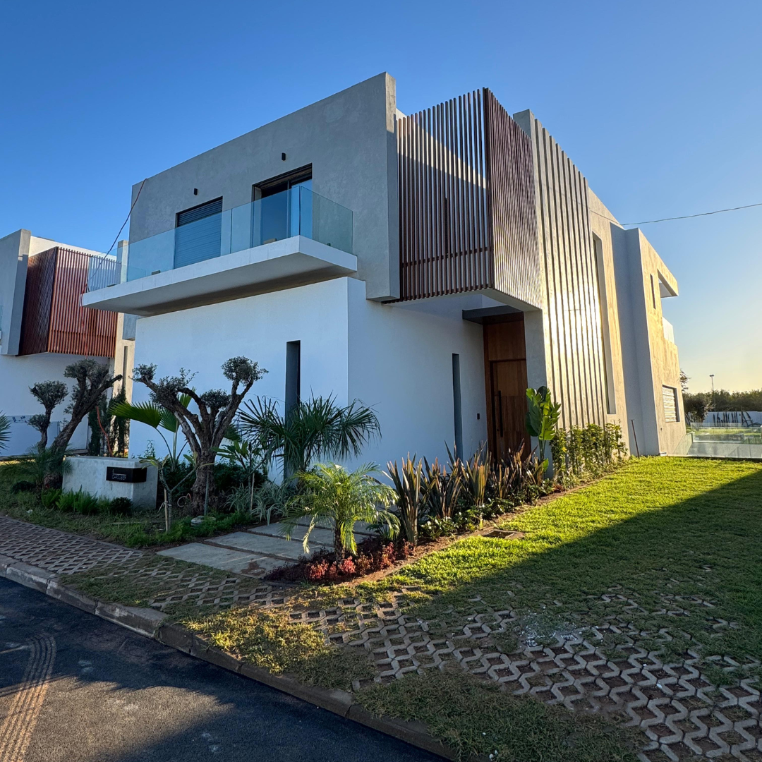 Situé à Rabat El Menzeh – Route de Zaer, Rabat, un projet exclusif de 13 villas de luxe bâties sur des terrains de 1 000 à 3 000 m². Design contemporain, suites avec terrasses et vue forêt, finitions haut de gamme (carrelage effet marbre, parquet, menuiserie en noyer) et piscine privée 9 m x 4,5 m avec plage aménagée : des villas haut standing à Rabat pensées pour une vie élégante et sereine.